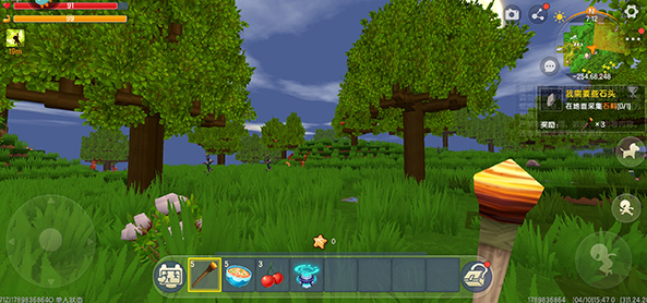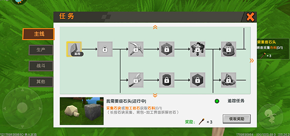进入游戏之后,右上角有任务提示,根据任务提示收集需要的材料;