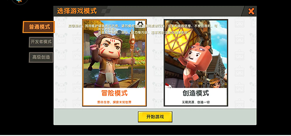 在首页点击开始游戏,创建一个新的世界选择冒险模式进入到游戏之中;